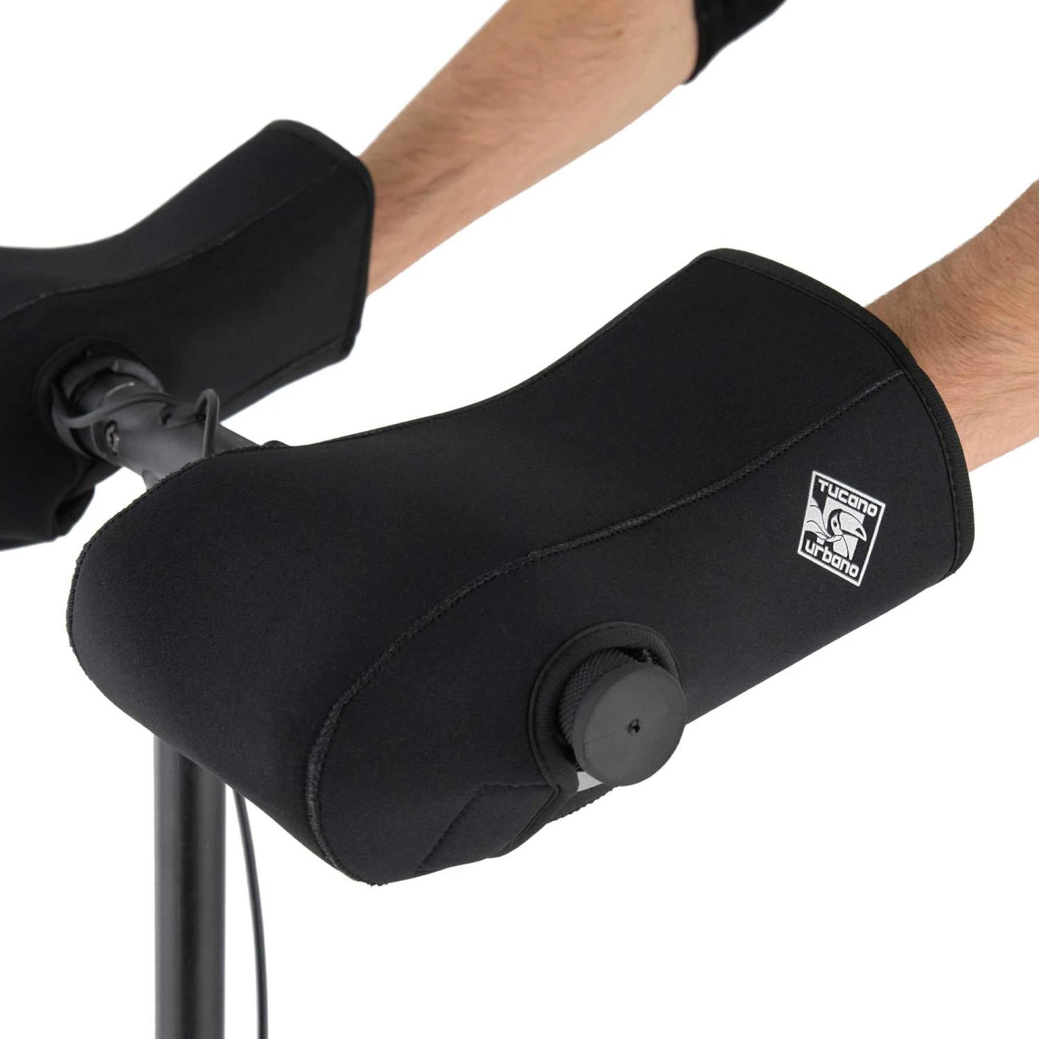 Imperméables et chauds, les manchons Tucano Urbano protègent les mains du cycliste au guidon d’un vélo fixie ou d’un cargobike.