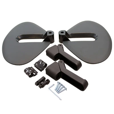 La paire de repose pieds gris foncé s’installent sur les haubans du vélo. Ils comprennent une partie qui protège la roue pour éviter que les pieds des enfants ne viennent buter dans les rayons comme un pare jupe arrière. La partie repose pieds permet de caler les pieds pour plus de confort.